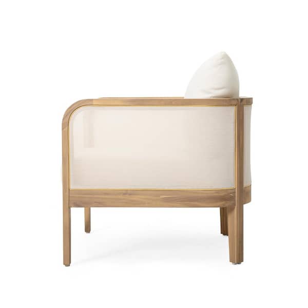 Acacia Wood Outdoor Lounge Chair, Patio Club Chair with Waterproof Beige Cushions for Garden, Backyard, Balcony(2-Pack)