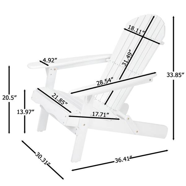 Acacia Wood White Folding Adirondack Chair Weather Resistant Oversized Outdoor Chair (1-Pack)