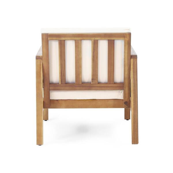 Acacia Wood Wicker Outdoor Chaise Lounge Chair, Club Chair with Soft Beige Cushion, Porch Chairs for Garden, Backyard