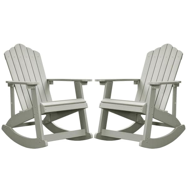 Acadia Light Gray Outdoor Durable Plastic Rocking Adirondack Chair (2-Pack)