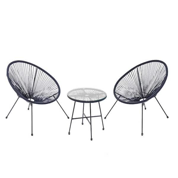 Acapulco Navy 3-Piece PE Wicker Patio Conversation Set 2 Chairs and 1 Coffee Table