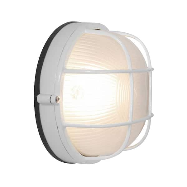 Nauticus 1-Light White Outdoor Bulkhead Light with Frosted Glass Shade