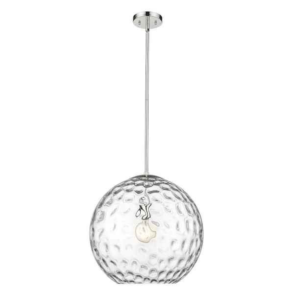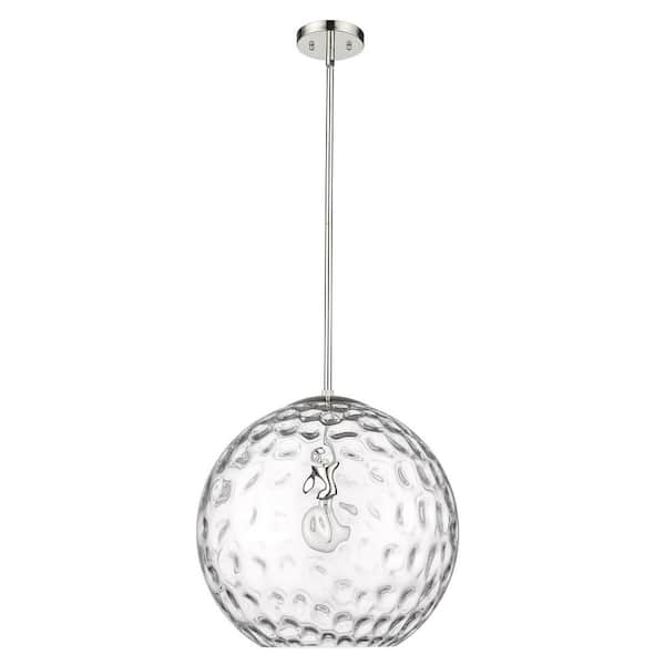 Mackenzie 1-Light Round Polished Nickel Pendant Light with Rippled Water Glass