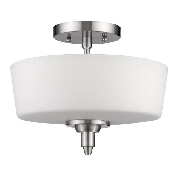 Paige 2-Light Satin Nickel Semi-Flush Mount Light with Frosted Glass Shade