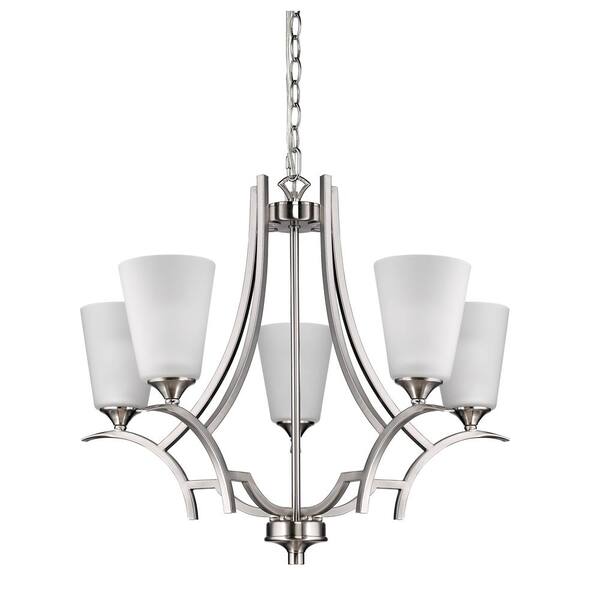 Zoey Indoor 5-Light Satin Nickel Chandelier with Glass Shades