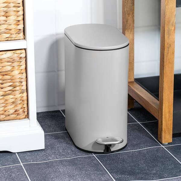 Slim Oval 5 L/1.3 Gal Pedal Trash Bin with Soft Close Lid in Matte Gray