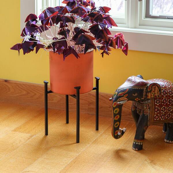 15 in. H, 8 in. W Cylinder Burnt Sienna Galvanized Steel Planter Pot w/Black Wrought Iron 4-Legged Plant Stand