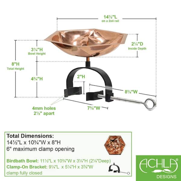 15 in. L Round Copper Plated Finish Stainless Steel Bee Fountain and Birdbath with Wrought Iron Over Rail Bracket