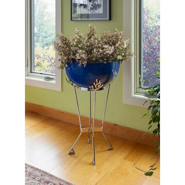 33 in. H Decorative Pots, 20 in. W French Blue Iron Indoor Outdoor Kazuyo Planter, Garden Accent
