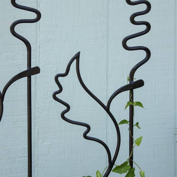 Achla Designs 47 in. H Black Powdercoated Wrought Iron Outdoor Garden Acanthus Fence Trellis w/4 Ground Stake (Set of 2)