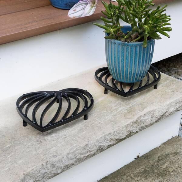 Achla Designs 6.88 in. W Black Powedercoat Finish Wrought Iron Leaf Trivet (Set of 2)
