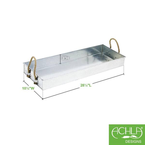 Achla Designs Galvanized Saucer Tray with Rope Handles, 28.25 in. Long, Steel Finish