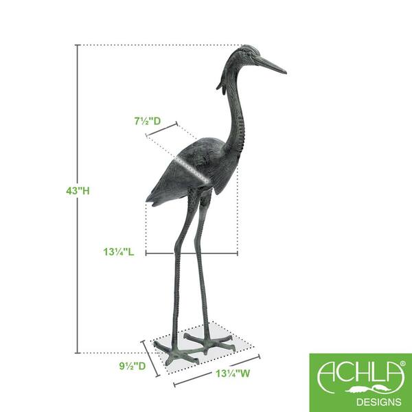Achla Designs Stately Great Blue Heron, 43 in. Tall, Blue-Grey Verdi Painted Finish