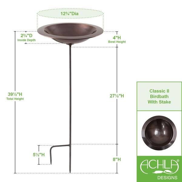 Classic II Birdbath w/Stake, 12.75 in. Diameter, Antique Copper