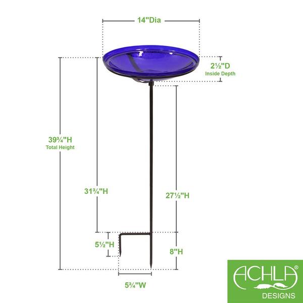 Reflective Crackle Glass Birdbath Bowl With Stake 14 in. Dia Cobalt Blue