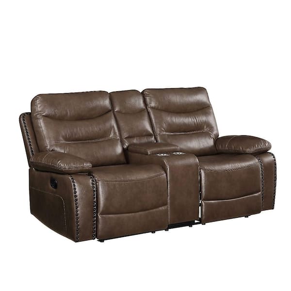 Aashi 38 in. Brown Solid Leather 2-Loveseats with Tight Back