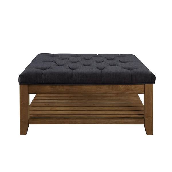 Aizen Dark Gray Fabric and Weathered Oak Ottoman