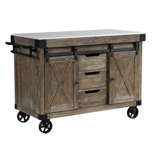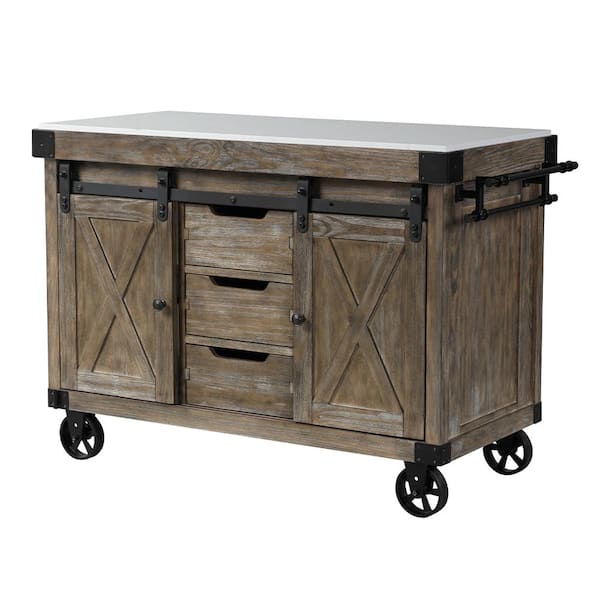 Alforvott Marble & Weathered Gray Finish Kitchen Islands
