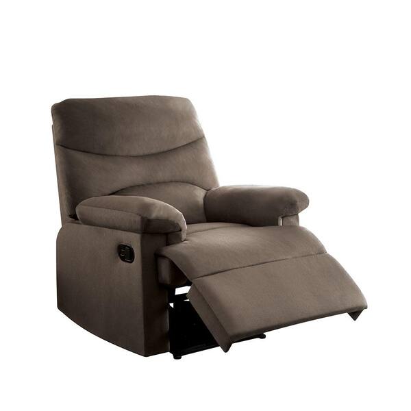 • Light brown woven fabric upholstery with a metal reclining.