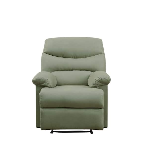 • Stylish sage microfiber recliner with motion reclining mechanism.