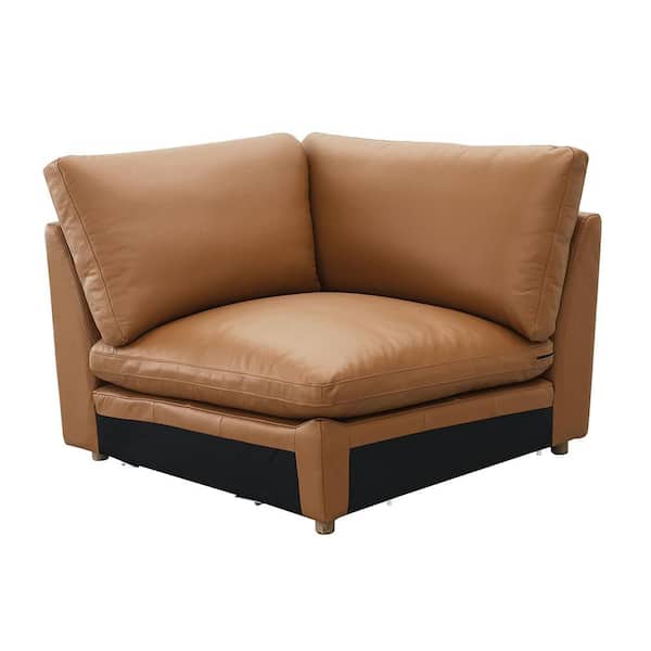 Brighton 45 in. Armless Leather Square Sofa in Brown