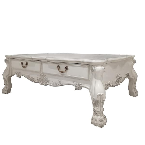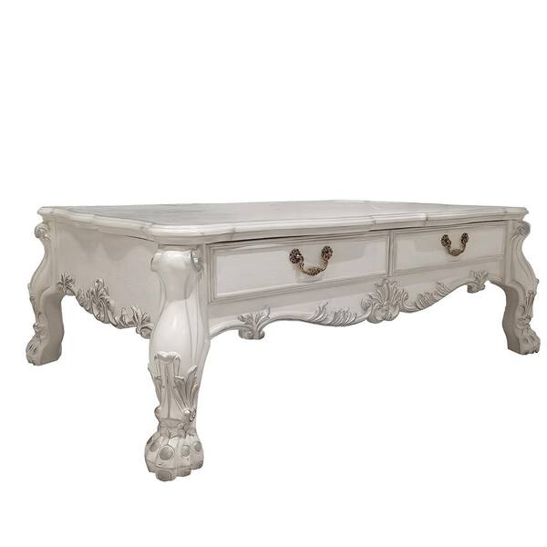 Dresden 57 in. Bone White Finish Rectangle Wood Coffee Table with Storage