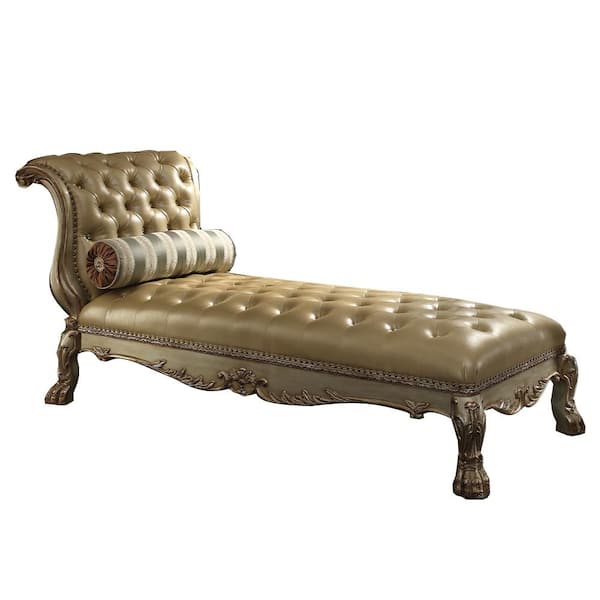 Dresden Bone PU and Gold Patina Leather Chaise (Set of 1)