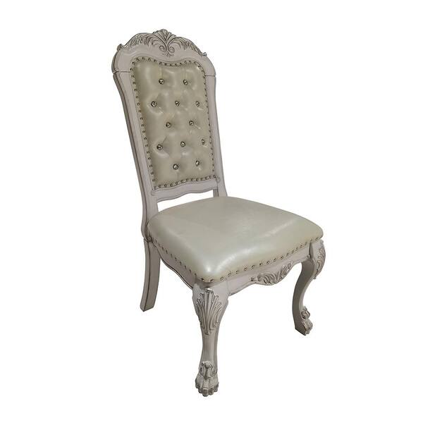 Dresden Synthetic Leather & Bone White Finish Leather Side Chair Set of 2 with No Additional Features