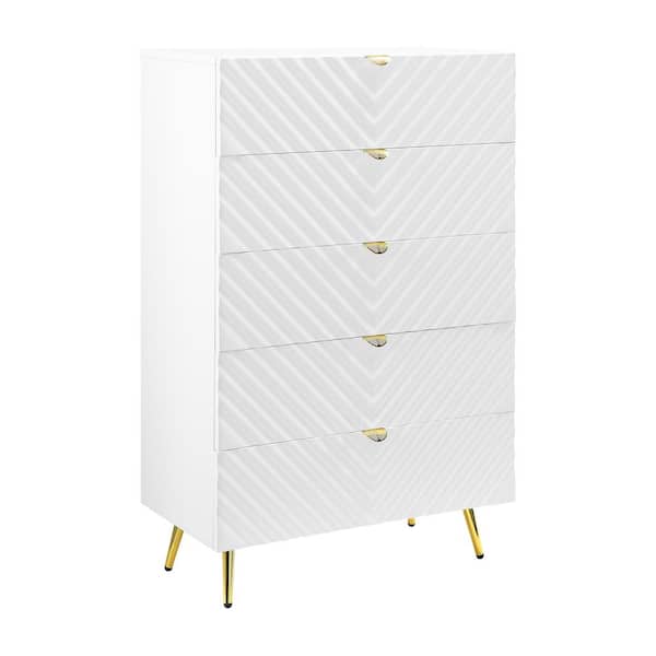 Gaines 5-Drawer White High Gloss Chest of Drawers (49 in. H x 32 in. W x 18 in. D)
