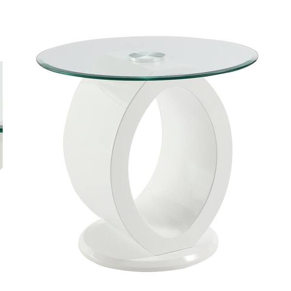 Larry 24 in. Glass Top, White High Gloss Finish Round Glass End Table with No Additional Features