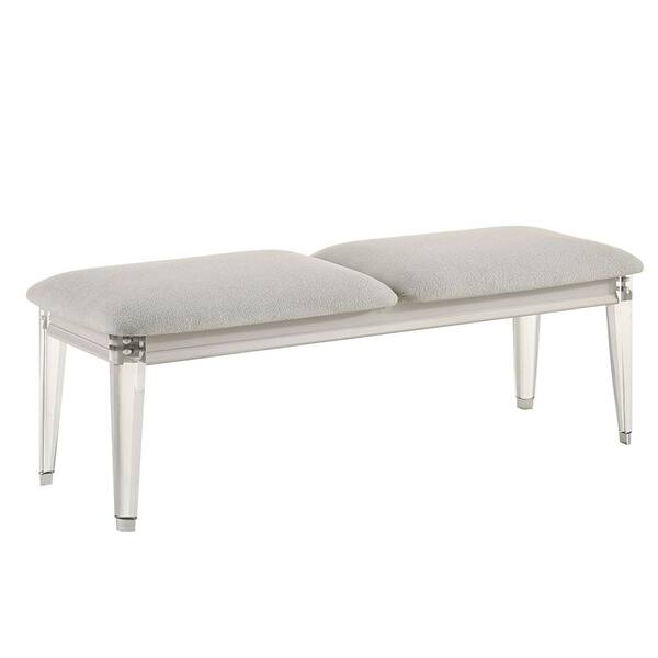 Laveda Light Gray Boucle and Pearl White Finish Bedroom Bench