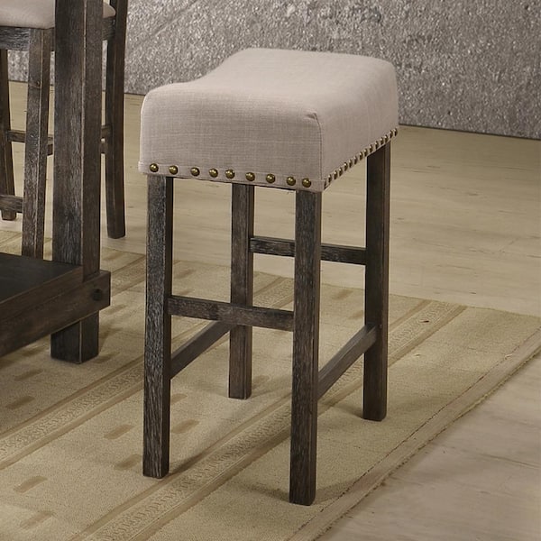 Martha II Counter Height Stool (Set-2) in Tan Linen and Weathered Gray