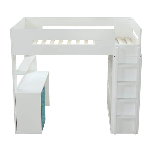 Nerice White and Teal 38 in. x 80 in. Loft Bed