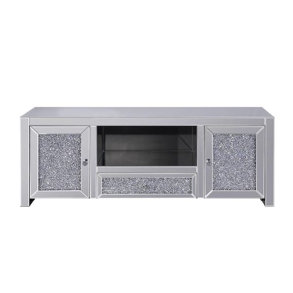 Noralie 59 in. Mirrored and Faux Diamonds Wood TV Stand with 2 Drawer Fits TVs Up to 50 in. with Storage Doors