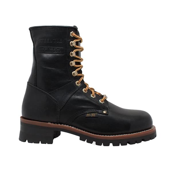 Men's Waterproof 9'' Logger Boot - Steel Toe - Black Size 9(W)