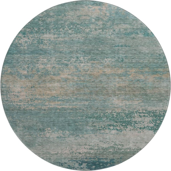 8 ft. x 8 ft. Aqua Mayfield Premium Machine Washable Abstract AMF2071 Round Rug