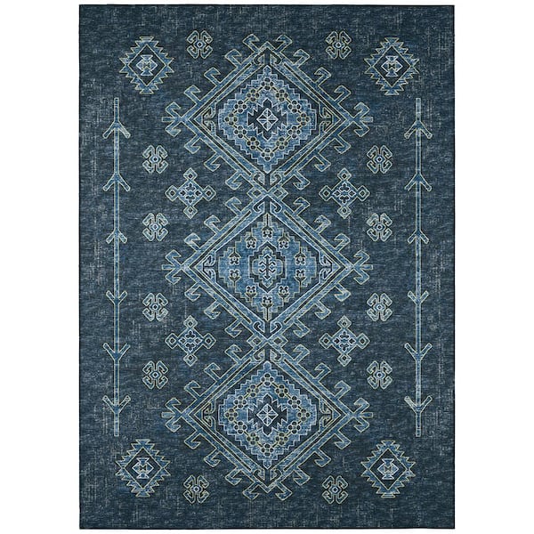 Bravado Blue 3 ft. x 5 ft. Geometric Indoor/Outdoor Washable Area Rug