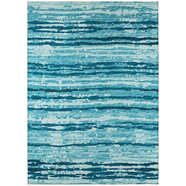 Bravado Blue 9 ft. x 12 ft. Geometric Indoor/Outdoor Washable Area Rug