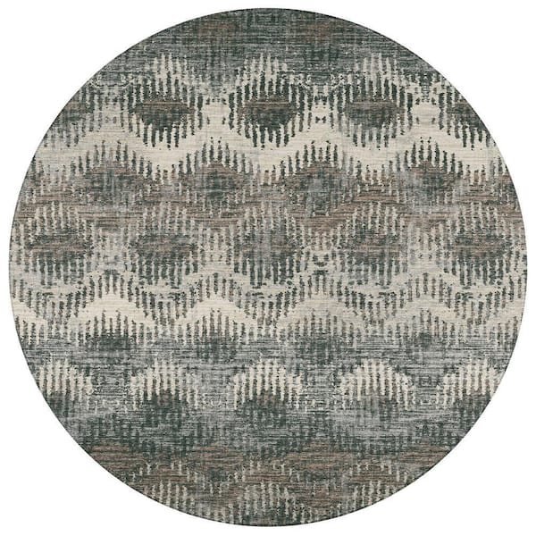 Bravado Grey 8 ft. x 8 ft. Geometric Indoor/Outdoor Washable Area Rug