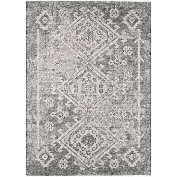 Bravado Grey 9 ft. x 12 ft. Geometric Indoor/Outdoor Washable Area Rug