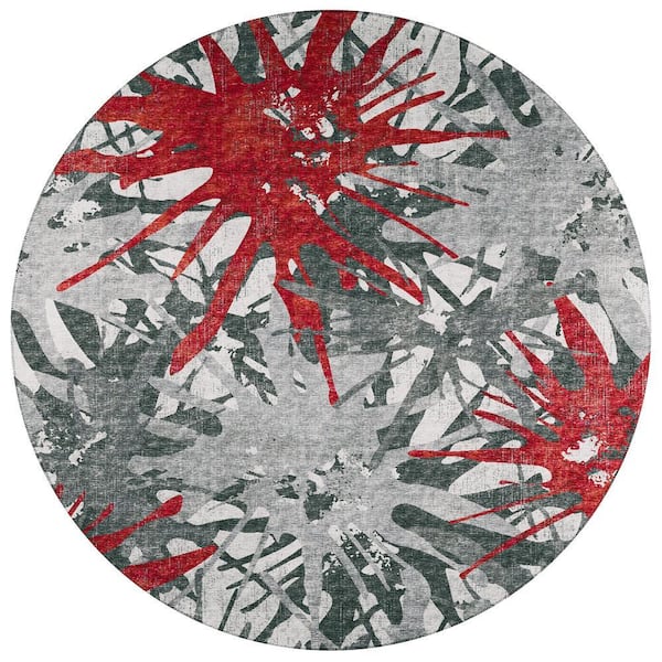 Bravado Red 8 ft. x 8 ft. Geometric Indoor/Outdoor Washable Area Rug