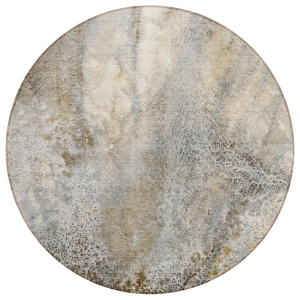 Chantille ACN505 Beige 8 ft. x 8 ft. Round Machine Washable Indoor/Outdoor Geometric Area Rug