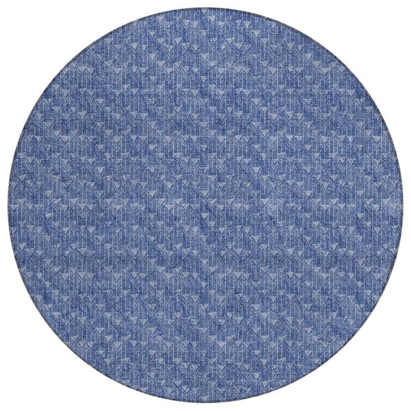 Chantille ACN514 Navy 8 ft. x 8 ft. Round Machine Washable Indoor/Outdoor Geometric Area Rug