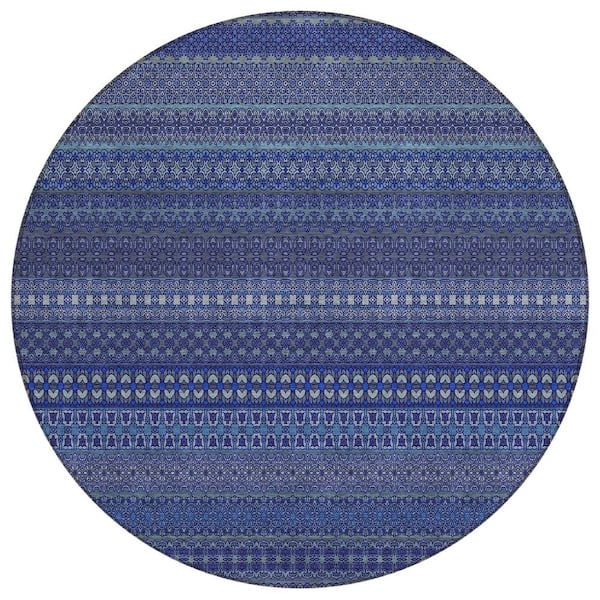 Chantille ACN527 Navy 8 ft. x 8 ft. Round Machine Washable Indoor/Outdoor Geometric Area Rug