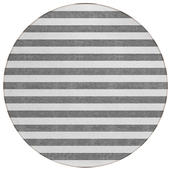 Chantille ACN528 Charcoal 8 ft. x 8 ft. Round Machine Washable Indoor/Outdoor Geometric Area Rug