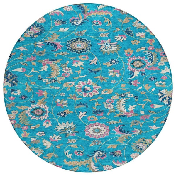 Chantille Machine Washable Indoor/Outdoor Abstract ACN1006 Teal 8 ft. x 8 ft. Area Rug