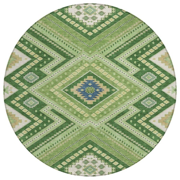 Chantille Machine Washable Indoor/Outdoor Abstract ACN1010 Green 8 ft. x 8 ft. Area Rug