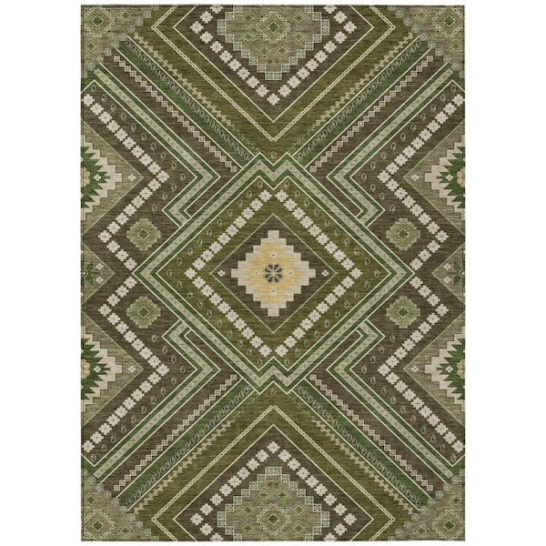 Chantille Machine Washable Indoor/Outdoor Abstract ACN1010 Olive 9 ft. x 12 ft. Area Rug