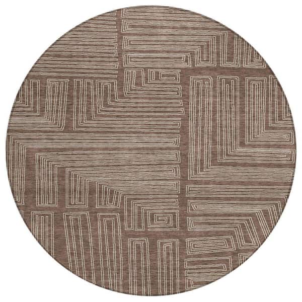 Chantille Machine Washable Indoor/Outdoor Abstract ACN1045 Brown 8 ft. x 8 ft. Area Rug