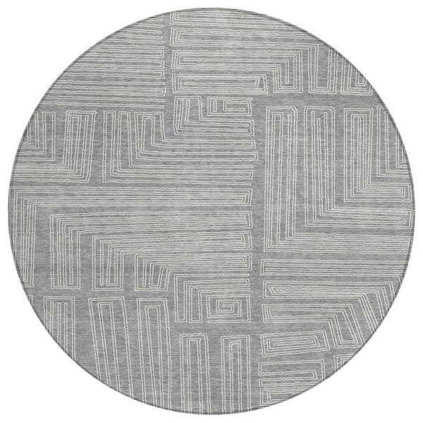 Chantille Machine Washable Indoor/Outdoor Abstract ACN1045 Gray 8 ft. x 8 ft. Area Rug